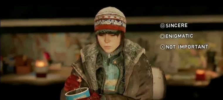 Now, having advanced (like, really advanced) design doesn't mean talking in Heavy Rain is a better experience than talking in The Walking Dead. The writing makes sure of that. Butt imagine a game written as well and acted as well as The Walking Dead utilizing this system. I can't even begin to fathom how good it would be. Hopefully Beyond approaches that level of quality, as the script and acting is already better than all of Heavy Rain in just a single demo.
